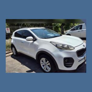 Kia Sportage año 2019, color blanco, robado en Mall Arauco Maipú