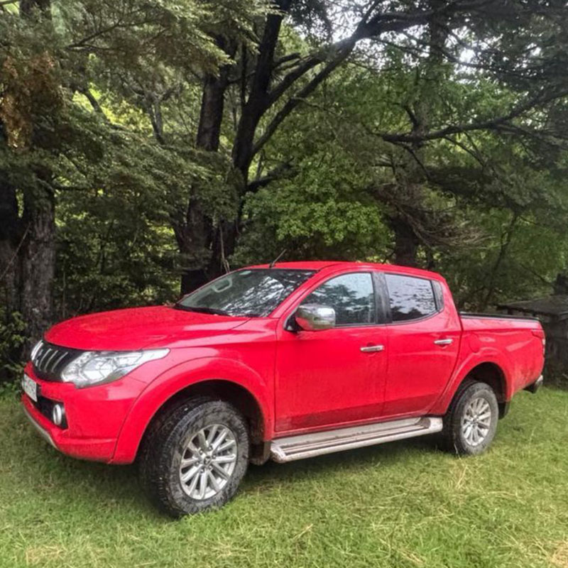 Camioneta Mitsubishi L200 Dakar año 2018, color rojo, robada en Las Condes