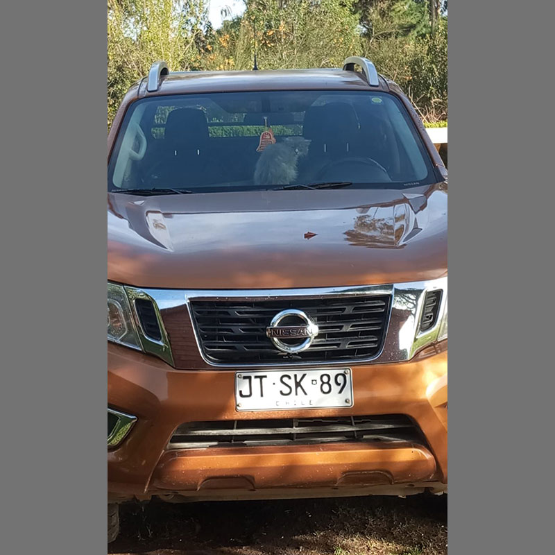 Camioneta Nissan NP300, año 2017, color naranja, robada en el estadio de Hualpin, Teodoro Schmidt, región de la Araucanía