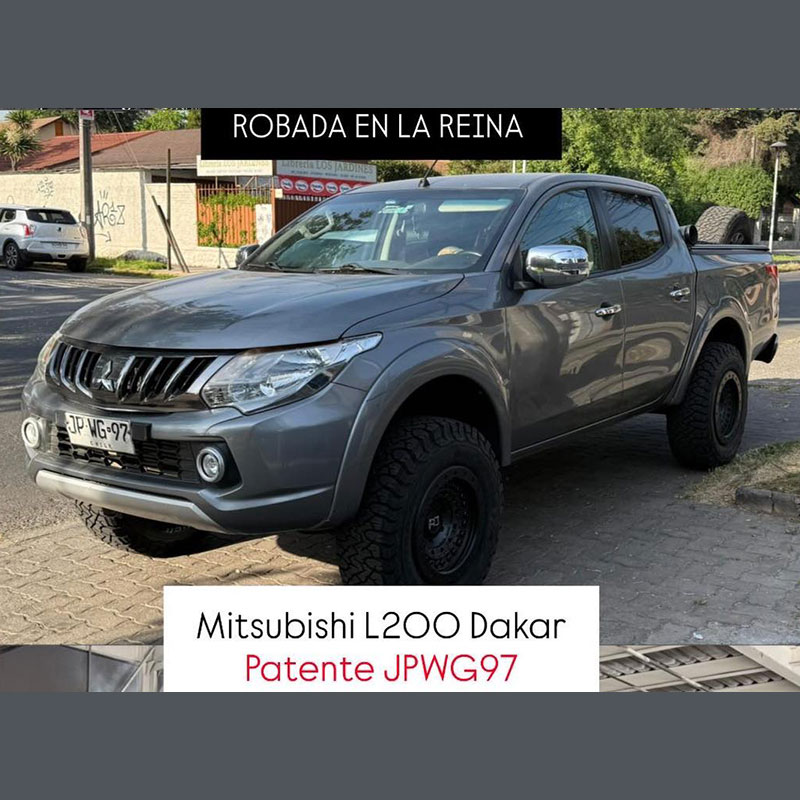 Camioneta Mitsubishi L200 Dakar, año 2017, color gris, robada en la comuna de La Reina