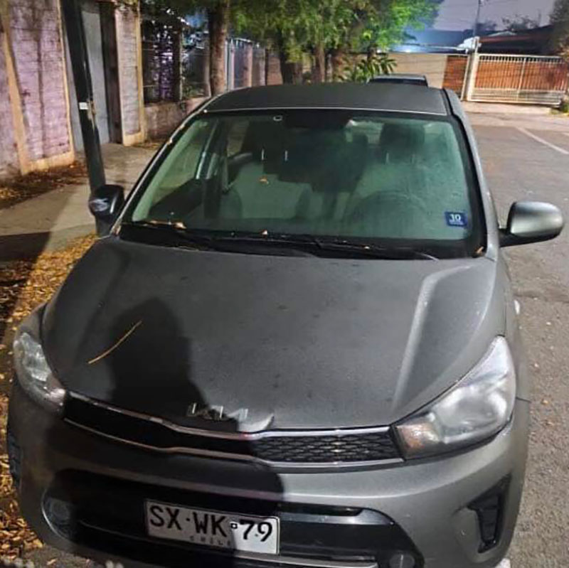Kia Soluto año 2023, plateado, robado en La Pincoya, comuna de Huechuraba.
