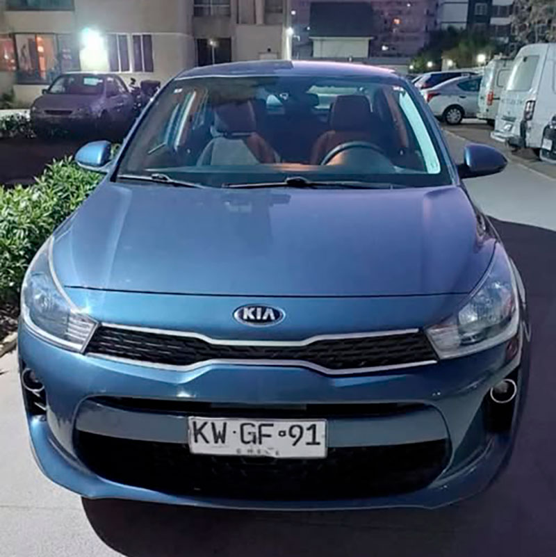 Kia Rio 4 año 2019, color azul, robado en Santa Rosa con Américo Vespucio, comuna de San Ramón