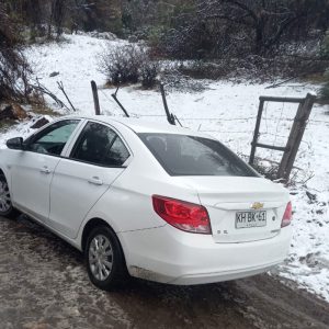 Chevrolet Sail 1.5, año 2018, color blanco, robado en un asalto en Santiago Centro